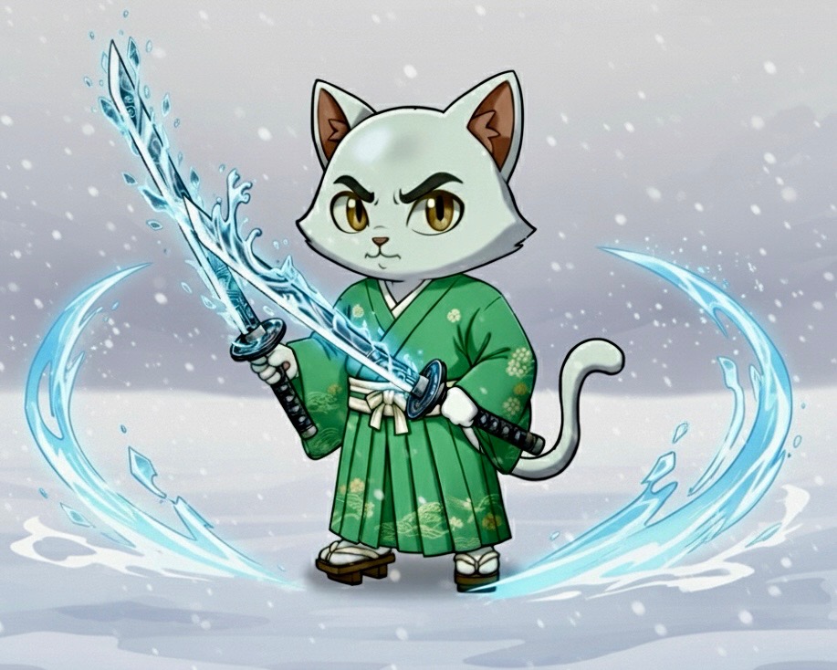 Origin: Yuki earned the name from the Shisoku-Neko monks, an ancient order of feline warrior guardians, whose fur is the color of the first, purest snow atop Mount Kenketsu. The mountain’s spirit, residing in this perpetual winter mantle, demands absolute, cold discipline—the very same discipline we demand of our developers (when they are awake).